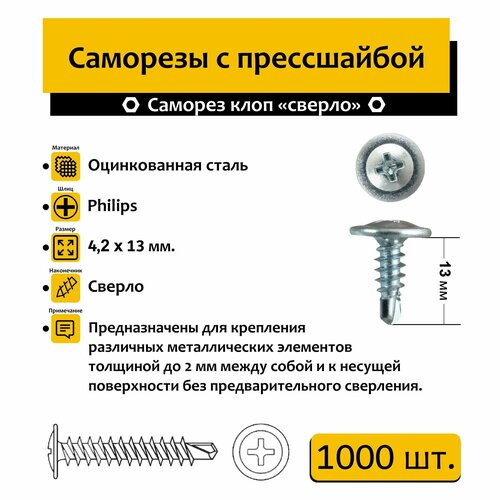 Саморез "нико" с прессшайбой 4,2х13 мм 1000 шт.