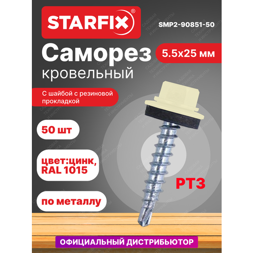 Саморез кровельный 5.5х25 мм цинк шайба с прокладкой PT3 RAL 1015 STARFIX 50 штук (SMP2-90851-50)