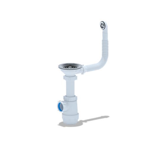 Сифон для кухонной мойки АНИ D1042SP 3.1/2"*40 с круглым переливом и отводом для стиральной машины