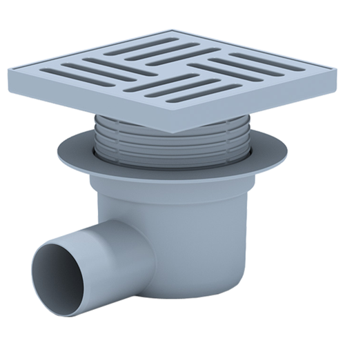 Трап для душа горизонтальный АниПласт ТА1610 регулируемый, выпуск 110, с гидрозатвором, с решёткой из пластика 150*150 мм
