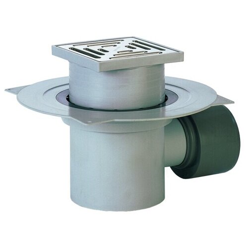 Трап нерегулируемый с "сухим" затвором серия PERFEKT Дн 110 с чугунной решёткой 226х226мм с подрамником из ПП горизонтальный выпуск HL HL605