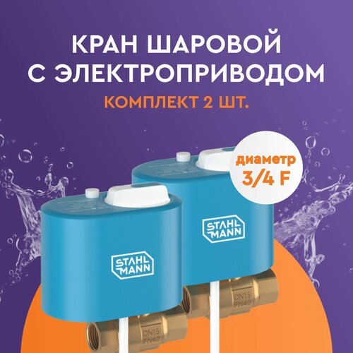 Кран шаровой с электроприводом Stahlmann 3/4F 12В для систем защиты от протечки воды (комплект 2 шт)