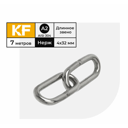 Нержавеющая цепь KREPFIELD 4x32 мм, DIN 763, А2, сварная, длиннозвенная, 8 м 763А2ЦЕПЬ4ММ-8