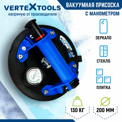 Вакуумная присоска (стеклодомкрат) для плитки и стекла с манометром 130 кг