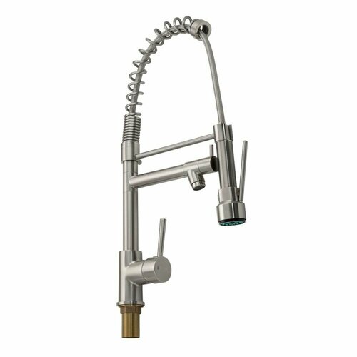 Смеситель кухонный BRIMIX 8251 сатиновый боковой латунь шаровый с гибким пружинным изливом с фиксацией