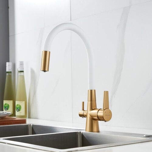 Смеситель для кухни с подключением фильтра питьевой воды Shevanik S328G золотой сатин