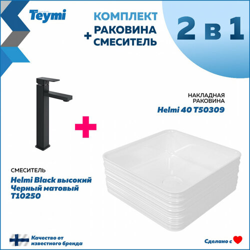 Комплект Teymi: Раковина Helmi 40 + смеситель Helmi Black высокий, матовый F00260