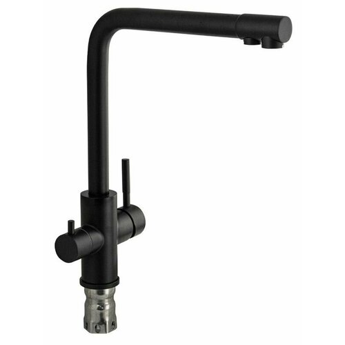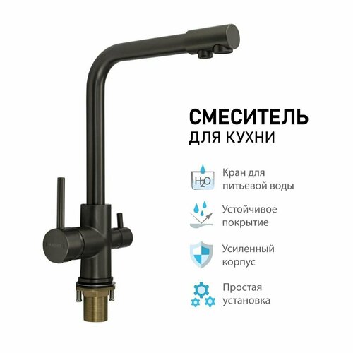 MAGNUS - Смеситель кухонный Г-образный излив, чёрный, шаровый, с двойным выпуском воды для фильтра, из нержавеющей стали марка 304