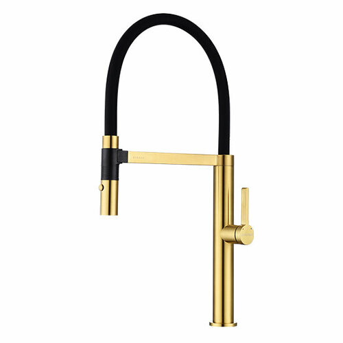 Смеситель для кухни с гибким изливом Paulmark SIEGEN брашированное золото, с подключением фильтра питьевой воды, Si213111-BG