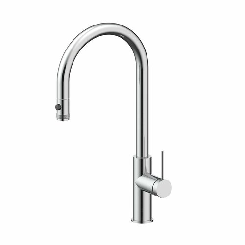 Этот компактный и лаконичный по дизайну смеситель имеет большую рабочую зону за счёт вытяжного излива.