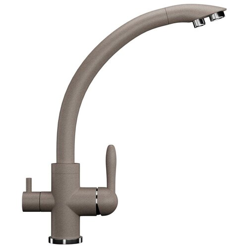 Код товара: 00311572 ULGRAN Quartz UQ-010 - высокоэргономичный кухонный смеситель с дополнительным краном для подключения фильтрованной воды, оснащенный кран-буксой с керамическими пластинами. Реализован тройной подвод воды через один излив: холодная, горячая и фильтрованная. Переход с одного подвода на другой производится поворотом рычага. Набор для соединения с фильтром входит в комплект . Система фильтрации приобретается дополнительно и монтируется под мойку, специальный индикатор сообщает о необходимости замены картриджа. Материал корпуса выполнен из высококачественной латуни, а окрашивание под \"искусственный камень\" в цвет мойки ULGRAN Quartz выполняется на собственном производстве, что позволяет идеально попасть в фирменный цвет ULGRAN Quart. В качестве керамического картриджа используется известный бренд Wanhai диаметром 35 мм с высокой пропускной способностью в 500 тысяч циклов \"открывания-закрывания\"