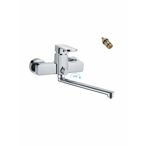 Смеситель оснащен гибкой подводкой и традиционным видом излива, что обеспечивает удобство и простоту монтажа. В комплекте с смесителем идут S-образные эксцентрики и держатель душевой лейки, что позволяет легко установить смеситель на стене.