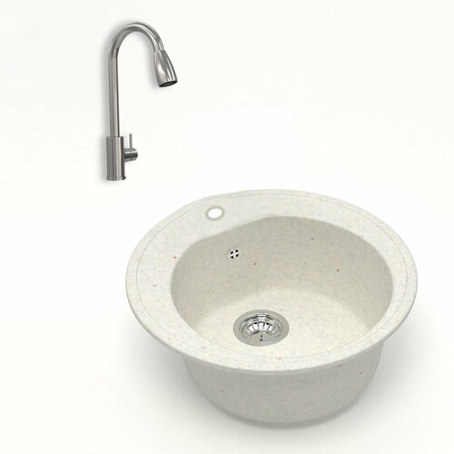 Комплект Teymi 2 в 1 для кухни: мойка Lina D51, круглая, белая матовая + смеситель для кухни Lori с выдвижным изливом, глянцевый хром F01499