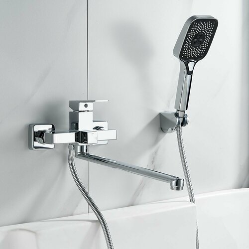 В комплекте со смесителем поставляются эксцентрики, настенный держатель для душевой лейки, а также декоративные отражатели. Керамический картридж обеспечивает долговечность и надежность механизма, а рычажное управление делает использование смесителя максимально удобным.