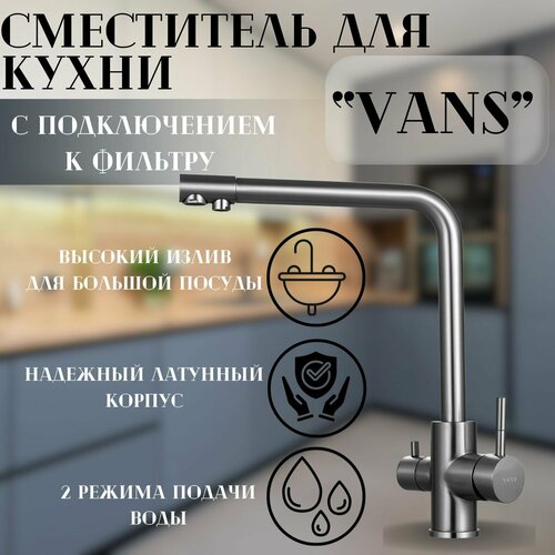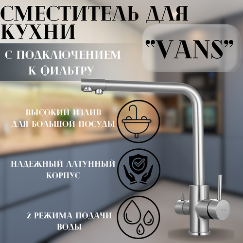 Смеситель для кухни гибкий излив с подключением фильтра питьевой воды "VANS" 4402-23