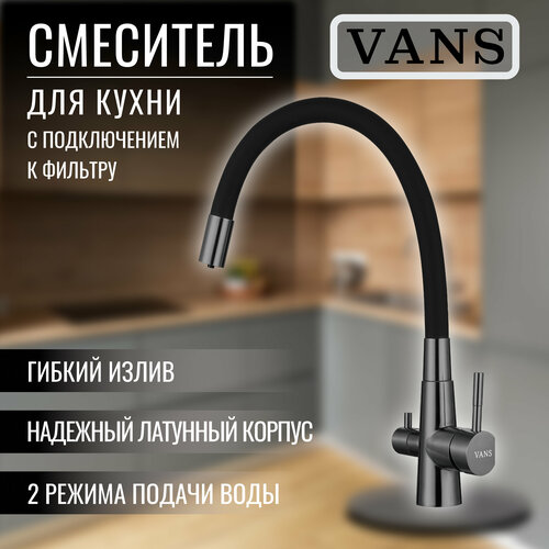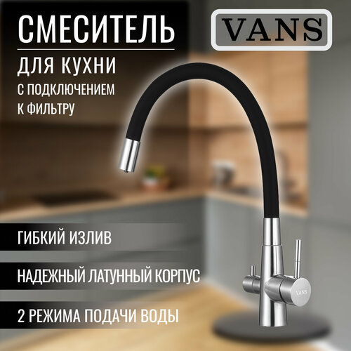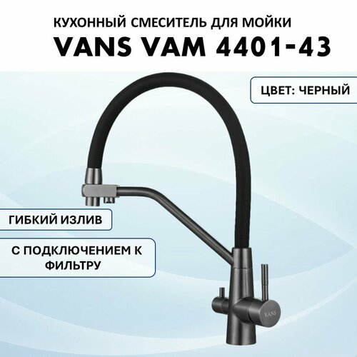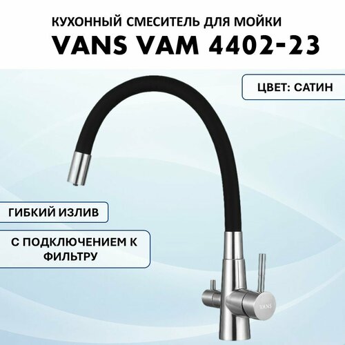 Смеситель для кухни с гибким изливом и подключением фильтра VANS VAM 4401-23 SATIN/BLACK