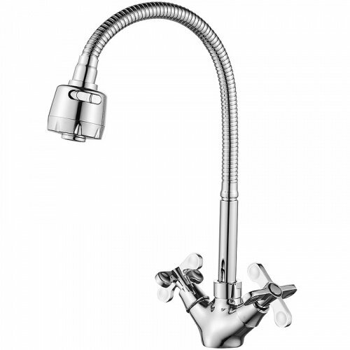 ROSSINKA RS42-75, Смеситель для кухонной мойки двуручный с гибким изливом, хром