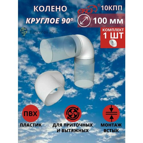 10ККП Колено для круглых воздуховодов ERA, D 100 мм, 90 градусов, пластик, (1 шт.)