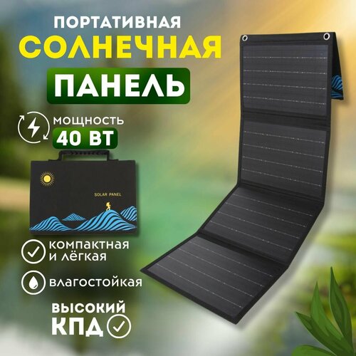 Солнечная панель туристическая 40 Вт, USB + DC выход. Портативная зарядка