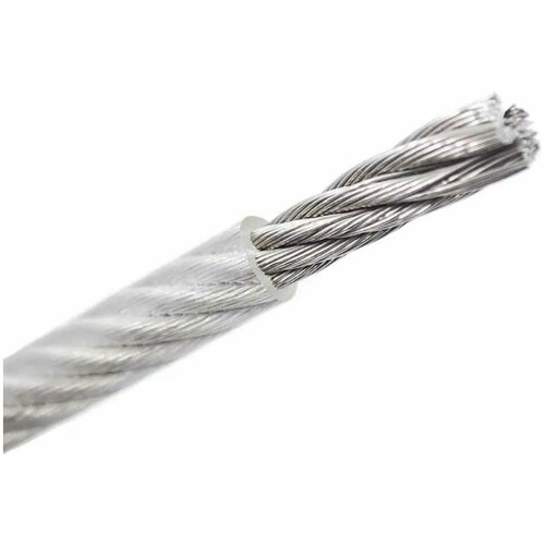 Трос нержавеющий 3,0/4,0 мм сталь А4 плетение 7х7 средней мягкости в ПВХ оплетке 10 метров