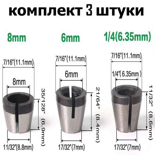 Цанга "МастерТех", сталь, для фрезера, 8мм. 6мм. 6,35мм, 3шт.