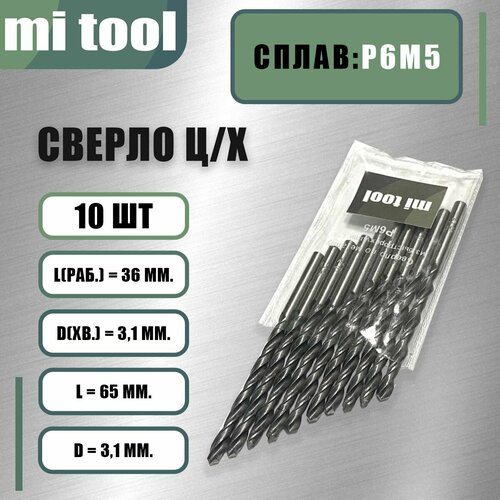 Сверло 3,1 мм ц/х по металлу Р6М5 (10 шт) класс "В"