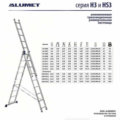 Лестница алюминиевая трехсекционная универсальная H3 5311 Алюмет