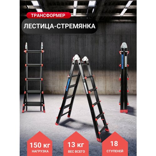 Лестница трансформер, стремянка алюминиевая 18 ступеней