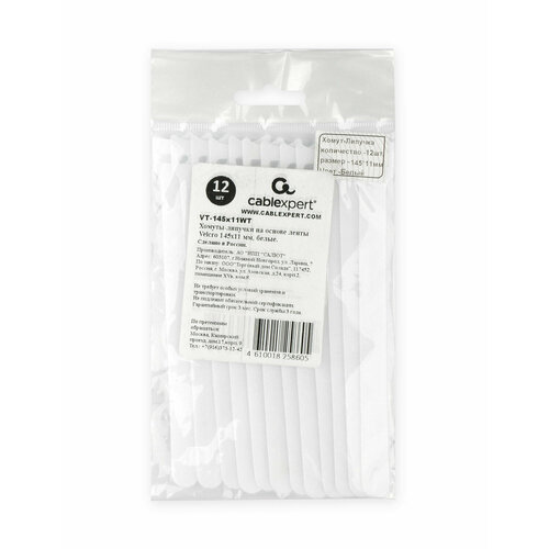 Хомуты-липучки Cablexpert на основе ленты Velcro 145x11 мм, черные, 12 шт. VT-145x11BK