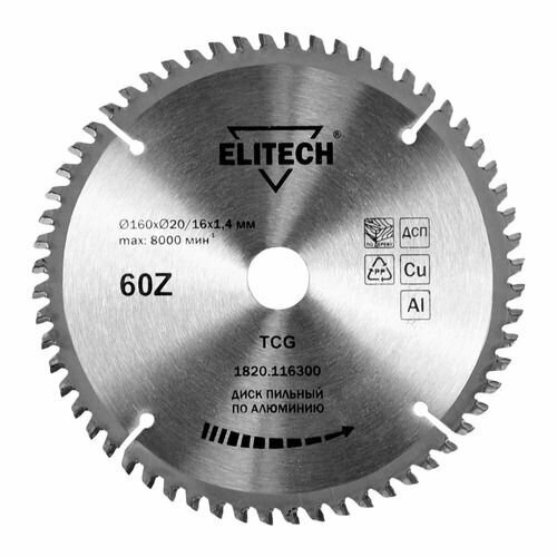 Пильный диск Elitech 1820.116300, по алюминию, 160мм, 1.4мм, 1шт