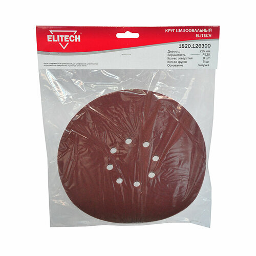 Круг шлифовальный Elitech 1820.126300, d 225, Р120, 5 шт. в упаковке