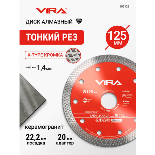 Диск алмазный по керамограниту тонкий 125 мм X-Type VIRA