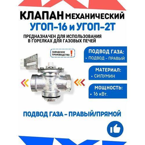 Клапан механический для УГОП-16/УГОП2Т подвод газа - правый - подключение/подвод газа справа заводское производство Россия