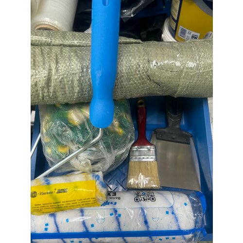 Валик 25см+валик 10 см+кисть 5см+ванночка большая+мешки 10шт+перчатки 10 шт+шпатель 10см