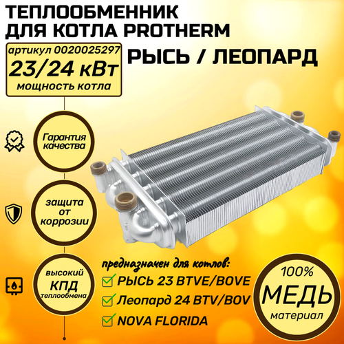 Теплообменник битермический для котла PROTHERM Рысь, Леопард 0020025297 NOVA FLORIDA Vela compact 24 FONDITAL Panarea, Victoria, Compact 6SCAMBIM04 медный
