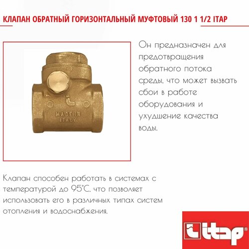 Клапан обратный горизонтальный муфтовый 130 1 1/2 Itap 12980