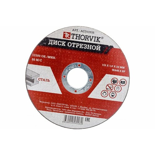 Thorvik ACD11525 Диск отрезной абразивный по металлу, 115х2.5х22.2 мм 52368