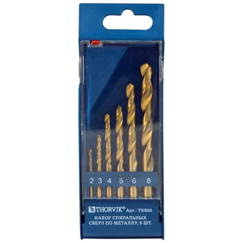 Набор Спиральных Сверл По Металлу Hss Tin В Пластиковом Кейсе, D2.0-8.0 Мм, 6 Предметов THORVIK арт. TDBS6