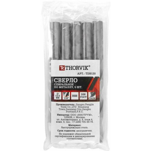 THORVIK TDB130 Сверло спиральное по металлу HSS, d13.0 мм THORVIK TDB130
