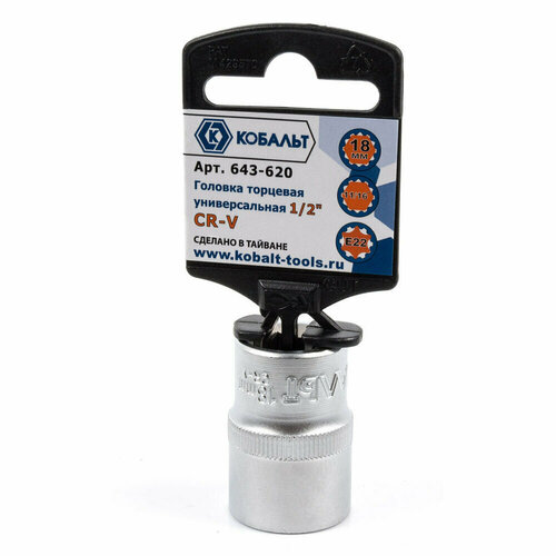 Головка торцевая универсальная кобальт 1/2, 18 мм, SPLINE Cr-V (643-620) подвес