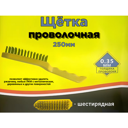 Кордщётка 250мм стальная/проволочная 6-ти рядная/толщина проволоки 0,35мм/ с пластиковой ручкой 1310-01Y