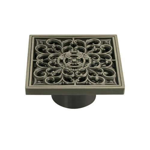 Трап под старую бронзу, с декором, 100х100 мм, вертикальный, с сухим затвором воды