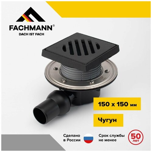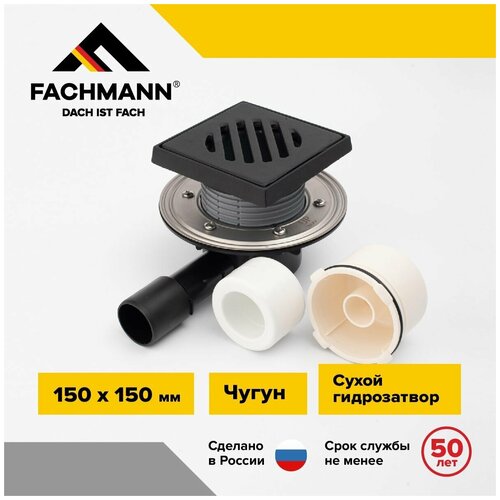 Трап для душа вертикальный с черной чугунной решеткой 150x150 T 310.0 POsG(D 50/75/110)