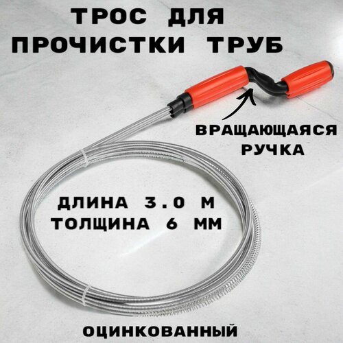 красныйТрос оцинкованный 1.5 м*6,0 мм сантехнический предназначен для устранения засоров в системе канализации