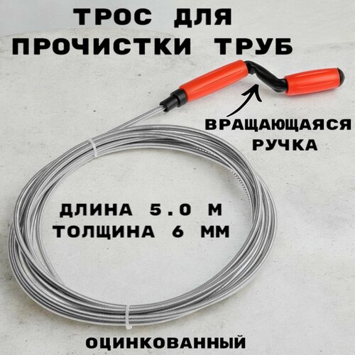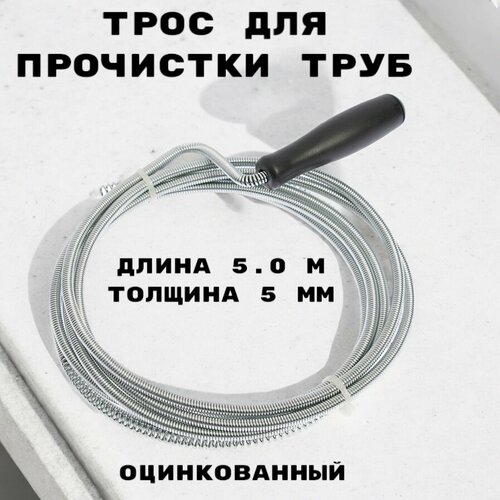 Трос сантехнический оцинкованный с ручкой диаметр 5 мм, длина 5,0 метров