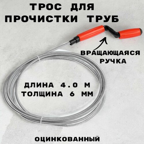 Трос сантехнический оцинкованный с вращающейся ручкой диаметр 6 мм, длина 4 метра