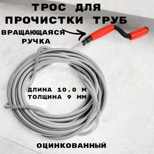 красныйТрос оцинкованный 15.0 м*9,0 мм сантехнический предназначен для устранения засоров в системе канализации