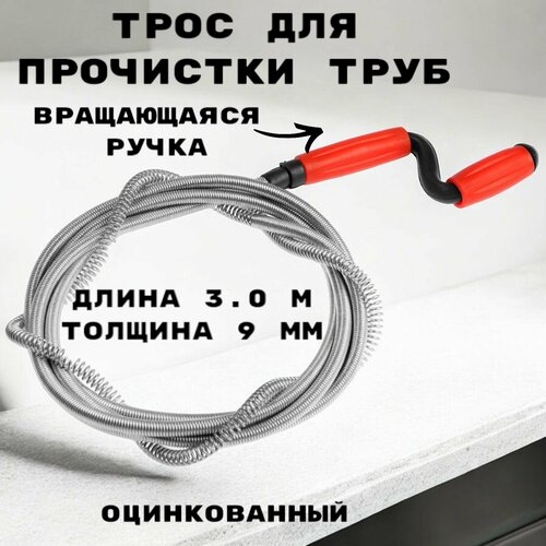 Трос сантехнический оцинкованный с вращающейся ручкой диаметр 9 мм, длина 3 метра