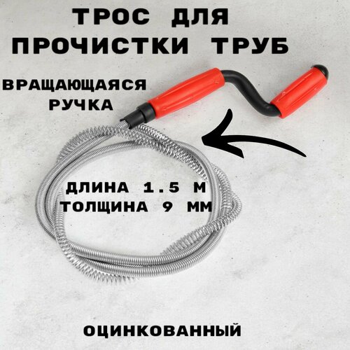 Трос сантехнический оцинкованный с вращающейся ручкой диаметр 9 мм, длина 1.5 метра