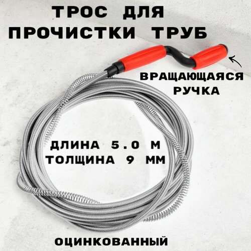 Трос сантехнический оцинкованный с вращающейся ручкой диаметр 9 мм, длина 5 метров